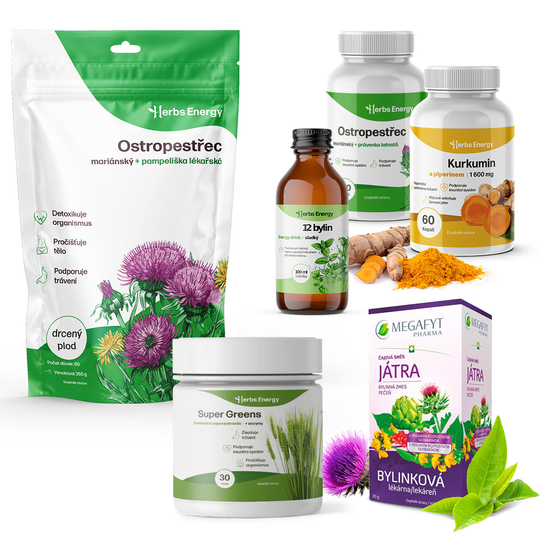Ostropestřec příznivě ovlivňuje normální funkci jater a trávení. Smetánka lékařská napomáhá k normální činnosti jater, žlučníku a podporuje správné trávení. Artyčok se rovněž podílí na normální funkci jater a trávení, a pomáhá pročistit organismus. Kurkuma má antioxidační vlastnosti a přispívá k normální činnosti jater.